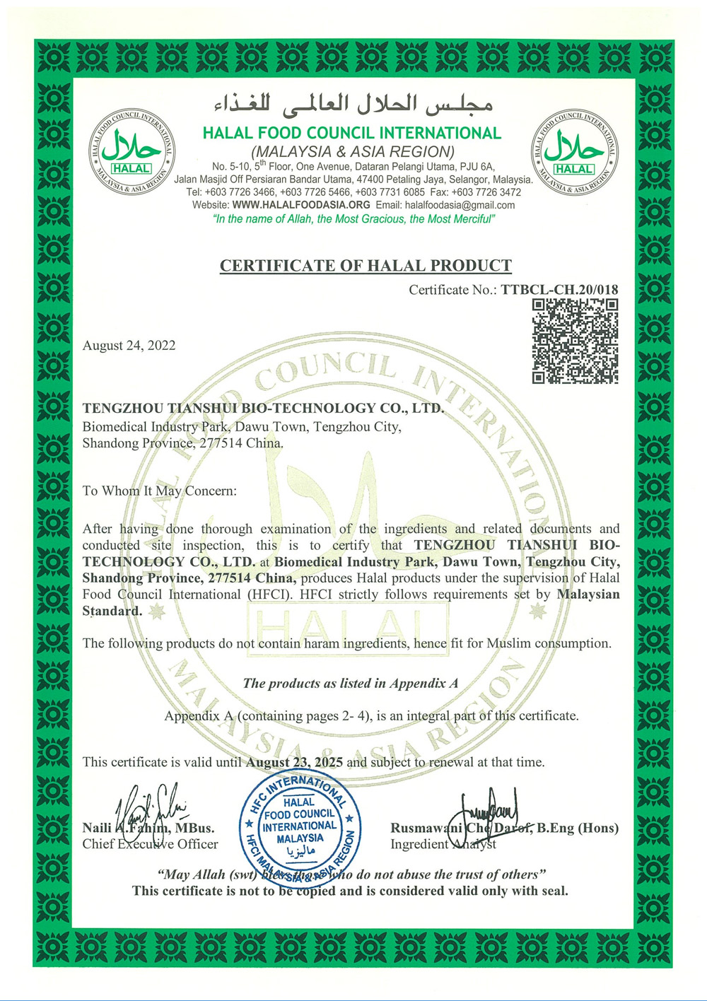 滕州市天水生物科技有限公司成立于2011年9月,是目前國內(nèi)雜環(huán)類合成食品香料、日化香料和醫(yī)藥中間體生產(chǎn)經(jīng)營的綜合性企業(yè)。坐落于山東省滕州市生物醫(yī)藥產(chǎn)業(yè)基地,總投資5000余萬元,占地面積約30000平方米,員工百余人。公司先后被評為高新技術(shù)企業(yè)、專精特新中小企業(yè)、科技型中小企業(yè),建有市級重點實驗室1處,并先后獲得ISO9001質(zhì)量體系認證、ISO22000食品安全體系認證、kosher認證和Halal認證。是香精香料及食品配料協(xié)會會員單位及滕州市中小企業(yè)協(xié)會理事單位。